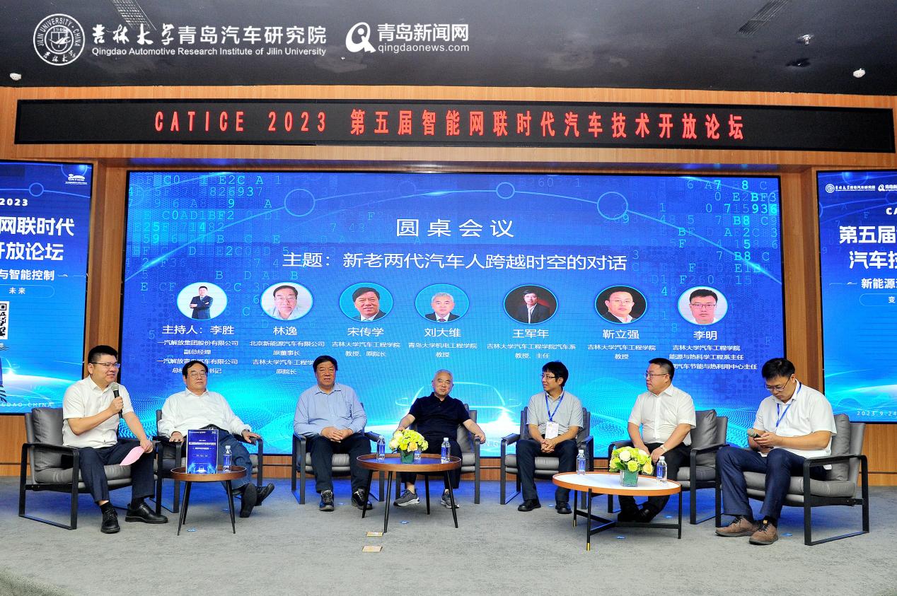 论坛上,一汽解放集团股份有限公司副总经理、一汽解放青岛汽车有限公司总经理、党委书记李胜主持“新老两代汽车人跨越时空的对话”圆桌会议,北京新能源汽车有限公司原董事长、北汽研究院总院原常务副院长林逸,太阳成集团tyc1286教授宋传学,青岛大学机电工程学院教授刘大维,太阳成集团tyc1286汽车系教授、主任王军年,太阳成集团tyc1286教授靳立强,太阳成集团tyc1286能源与热科学工程系教授、主任李明共同展开了一场高质量的行业探讨。