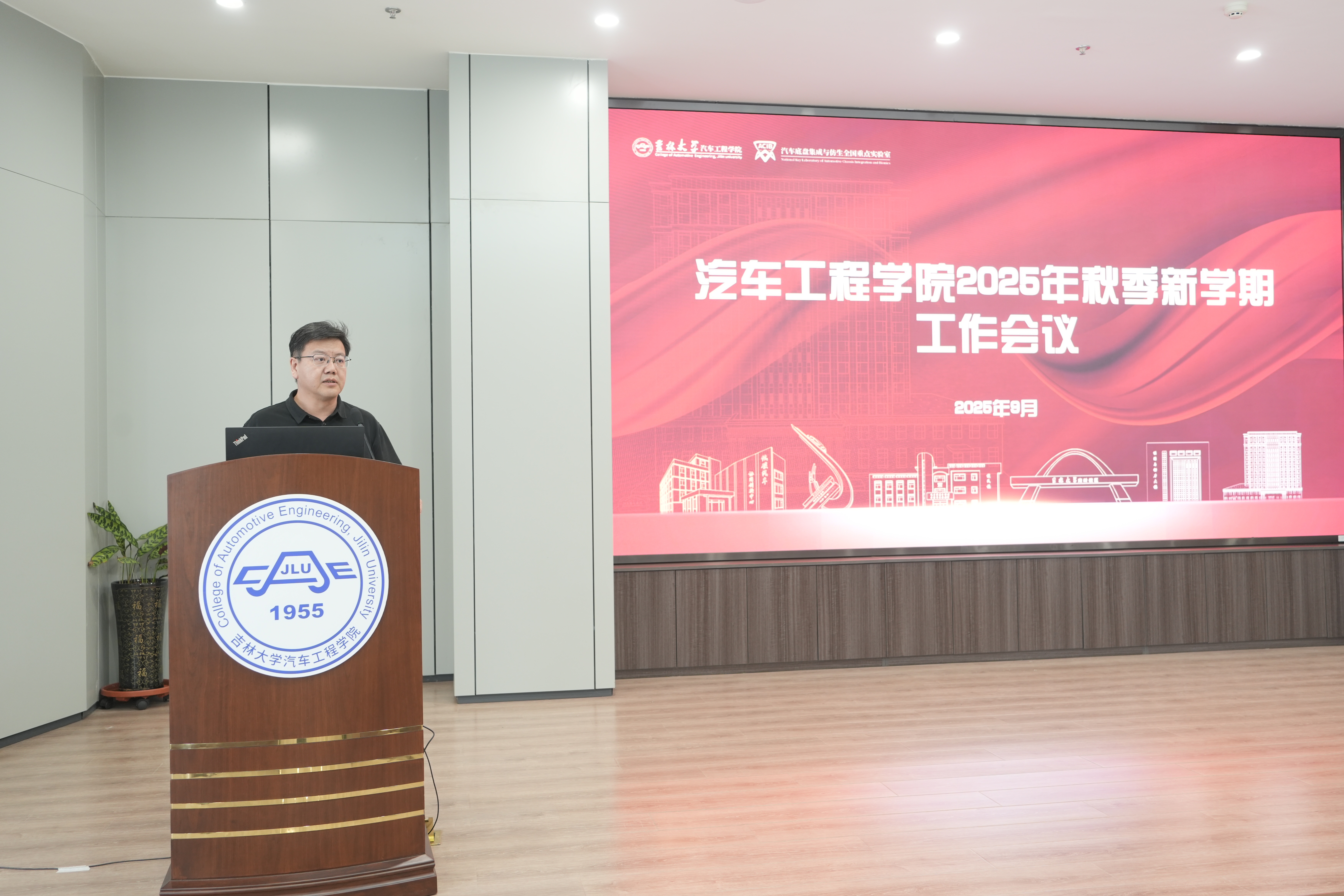 院长朱冰从党建工作、队伍建设、人才培养、学科建设、科研与实验室管理、学生工作、校友工作、国际合作以及行政管理等多个方面,系统总结了上半年学院取得的显著成绩,并立足“数智汽车时代,吉大汽车何为”这一命题,对新学期重点工作进行了周密部署。针对年度核心任务——学科70周年庆典,朱冰详细介绍了系列庆祝活动安排,强调“院庆不仅是‘庆生’,更是‘凝心聚力’”。他呼吁全体教师以主人翁姿态积极投身于宣传动员、环境美化、校友联络与捐赠对接等工作中,共同努力打造一场有战略高度,有人文关怀,有思想深度的庆典,让“吉大汽车人”的声音传得更远、更响。