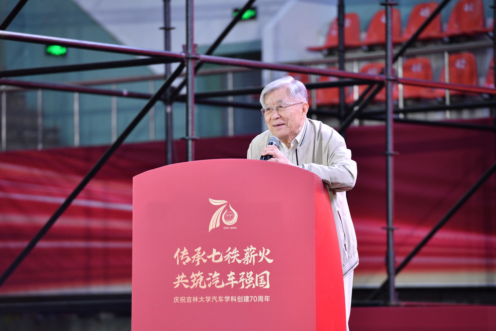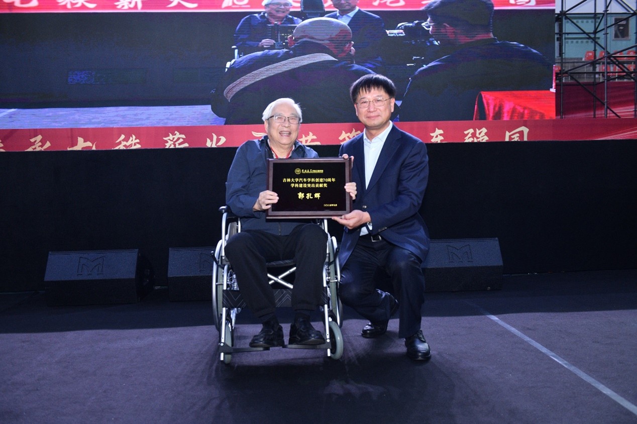 郭孔辉作为获奖代表在发言中深情回顾了与吉大汽车学科数十年的相伴历程。发言真挚动人,引起全场强烈共鸣。