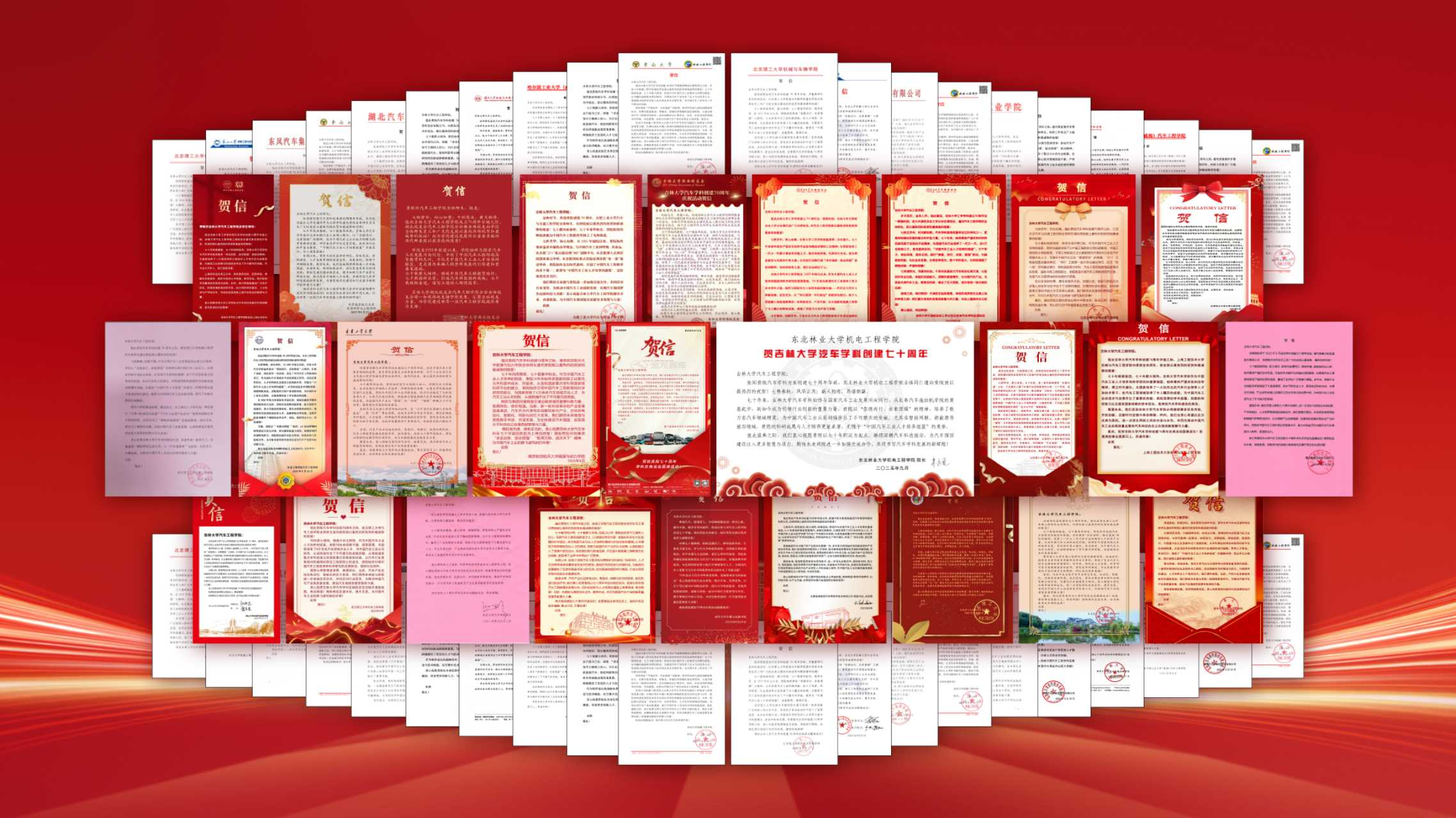 太阳成集团tyc1286汽车学科创建70周年公告发布以来,各级领导、兄弟单位、合作企业和广大校友纷纷以各种形式表达热烈祝贺,收到80余家单位及个人致来贺信贺电。