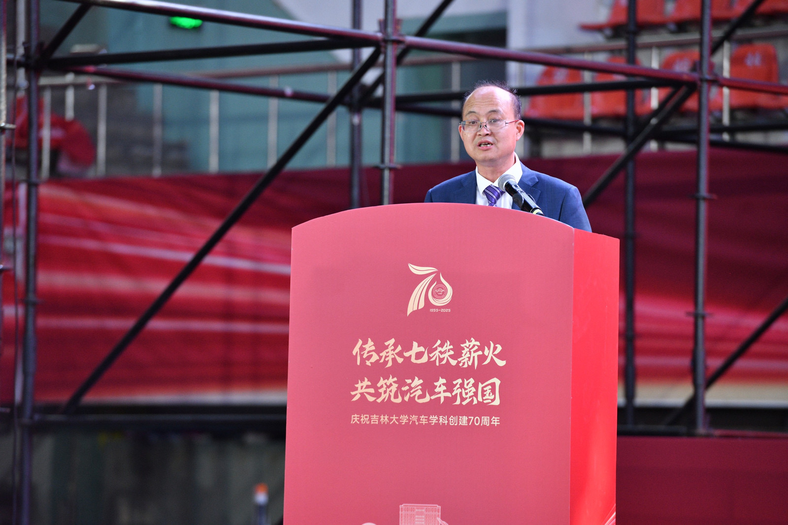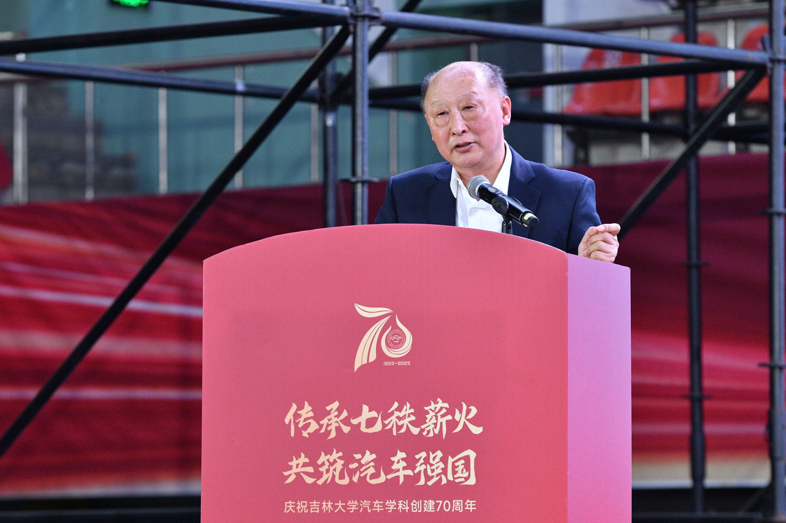 张国兴在致辞中代表学校向与会领导、嘉宾和校友表示欢迎。他回顾了吉大汽车学科创建和发展的不凡历程,并希望学院赓续精神血脉,为争创一流,勇攀高峰、彰显吉大力量。